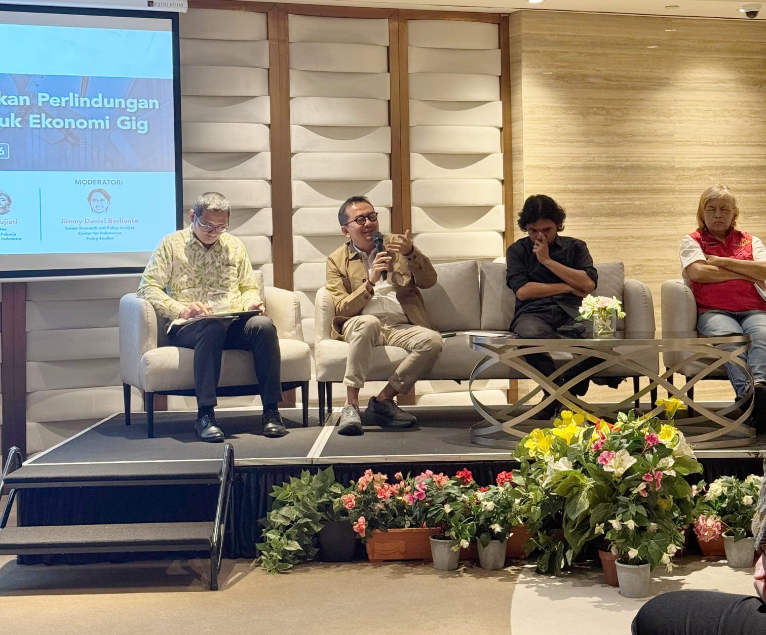 “Padahal, jutaan pekerja GIG atau pekerja mandiri di Indonesia saat ini bekerja tanpa perlindungan hukum yang berarti. Status mereka sebagai pekerja mandiri belum terakomodasi dalam undang-undang eksisting (UU Ketenagakerjaan). Jika tidak ada terobosan, kerentanan ini akan bertahan lama,” tegasnya.